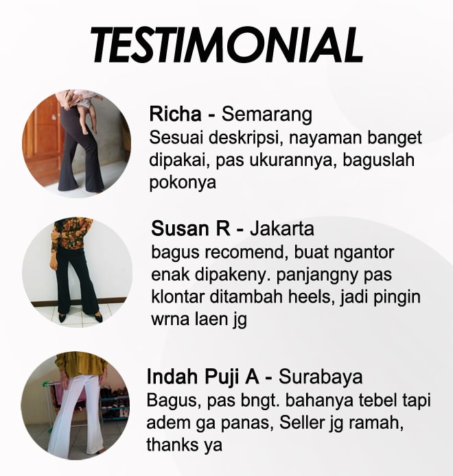 Desain highwaist / potongan diatas pinggang, nyaman dipakai dan membuat siluet tubuh tampak lebih sempurna