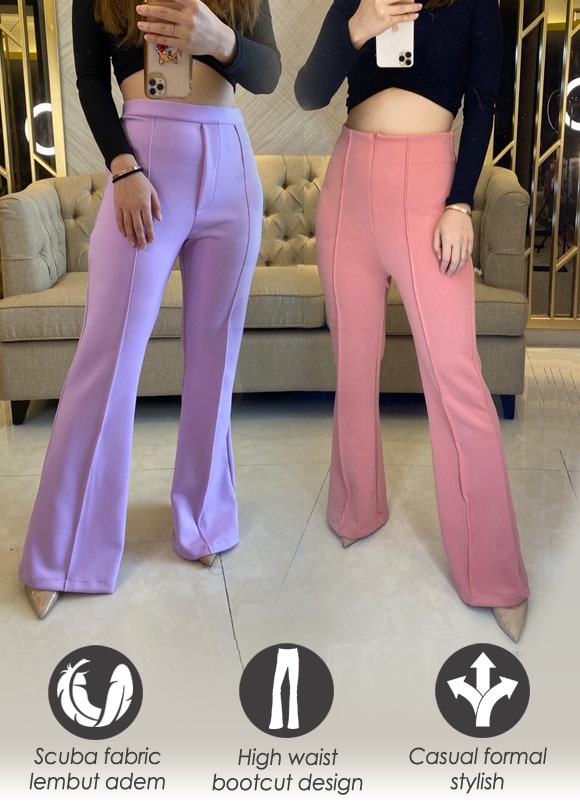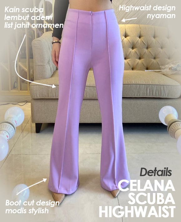 "Celana highwaist cutbray design berbahan scuba lembut adem, modis dan cantik untuk suasana formal maupun casual"